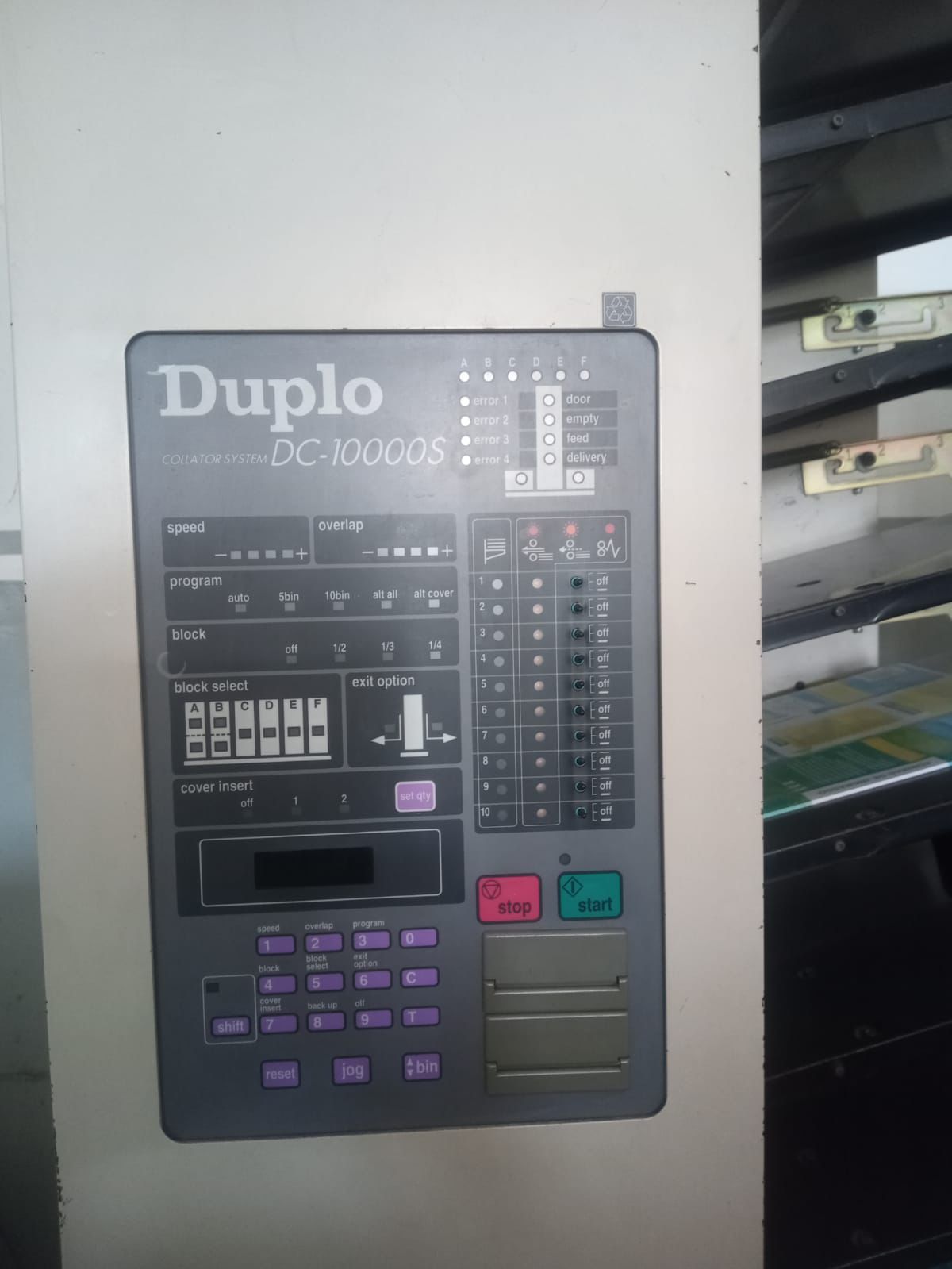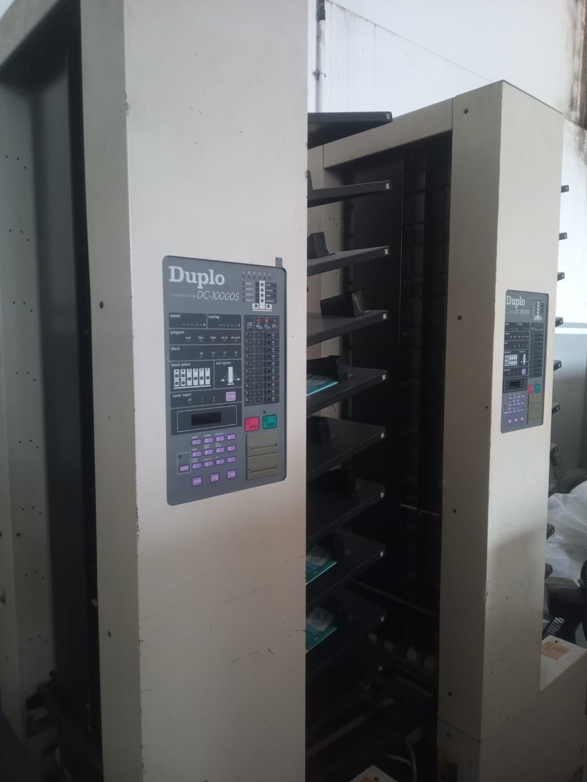 Alceadeira Duplo DC 10000S, 2 torres 10 gavetas, sucção, dobra, grampo e refile.