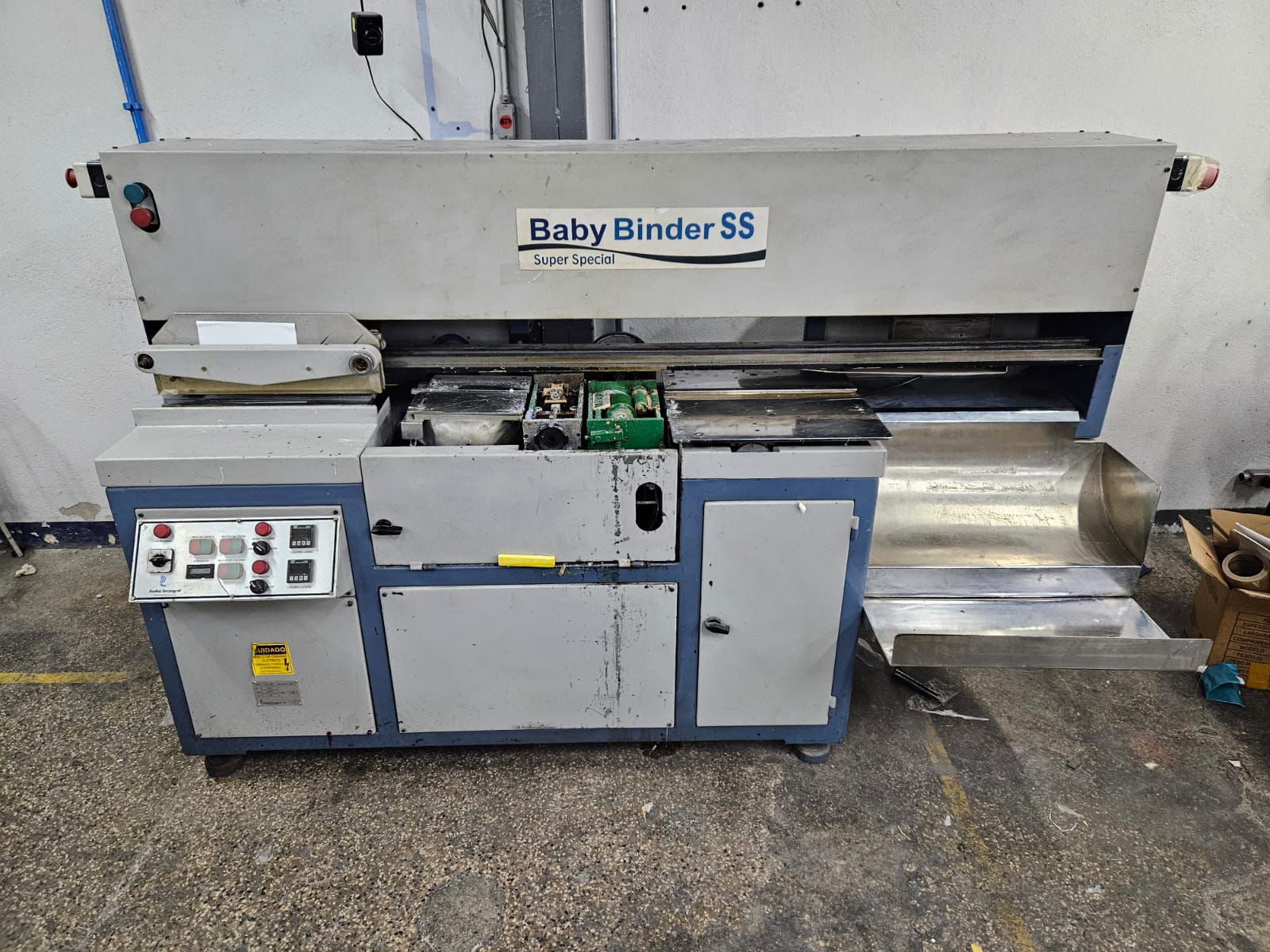 Coladeira de capas de livros Baby Binder SS ✅Unidade de fresa com dois riscardores ✅Aplicador de cola lateral ✅Aplicador de cola no lombo ✅Preparada para cola PUR ✅Controle de temperatura