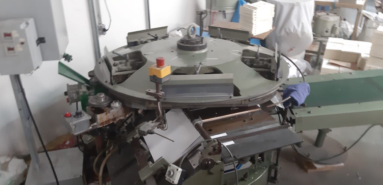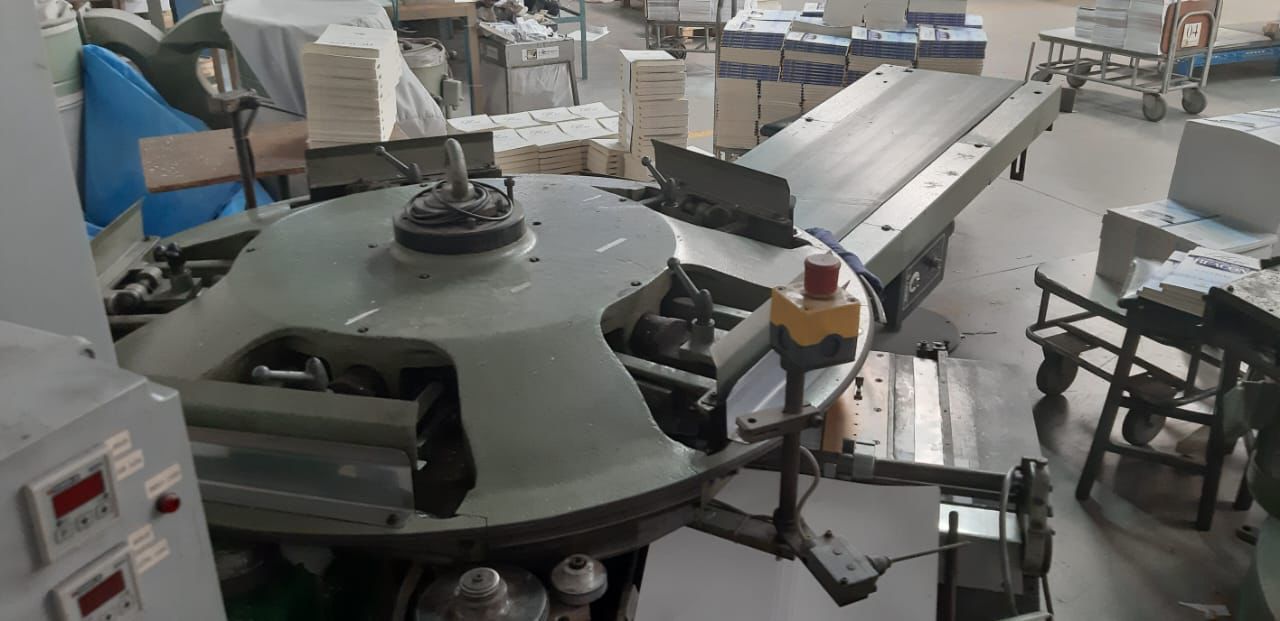 Coladeira de Capas Muller Martini Pony – Lombada quadrada – 5 gavetas de alimentação e capeiro automático com vinco. Coleiro principal e lateral para cola hot-melt e PUR.Produtividade média 2000/h