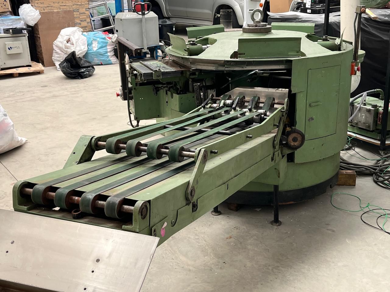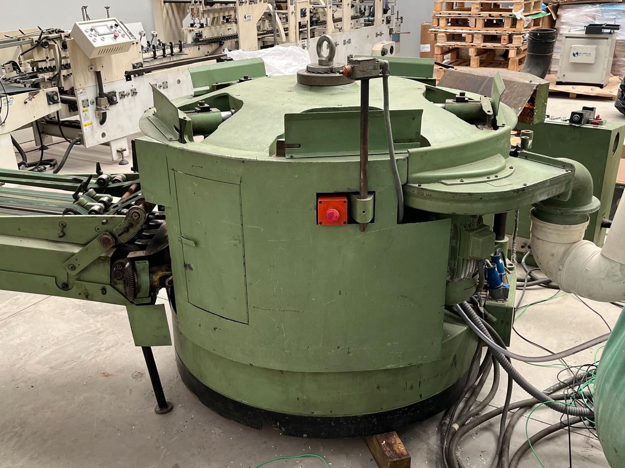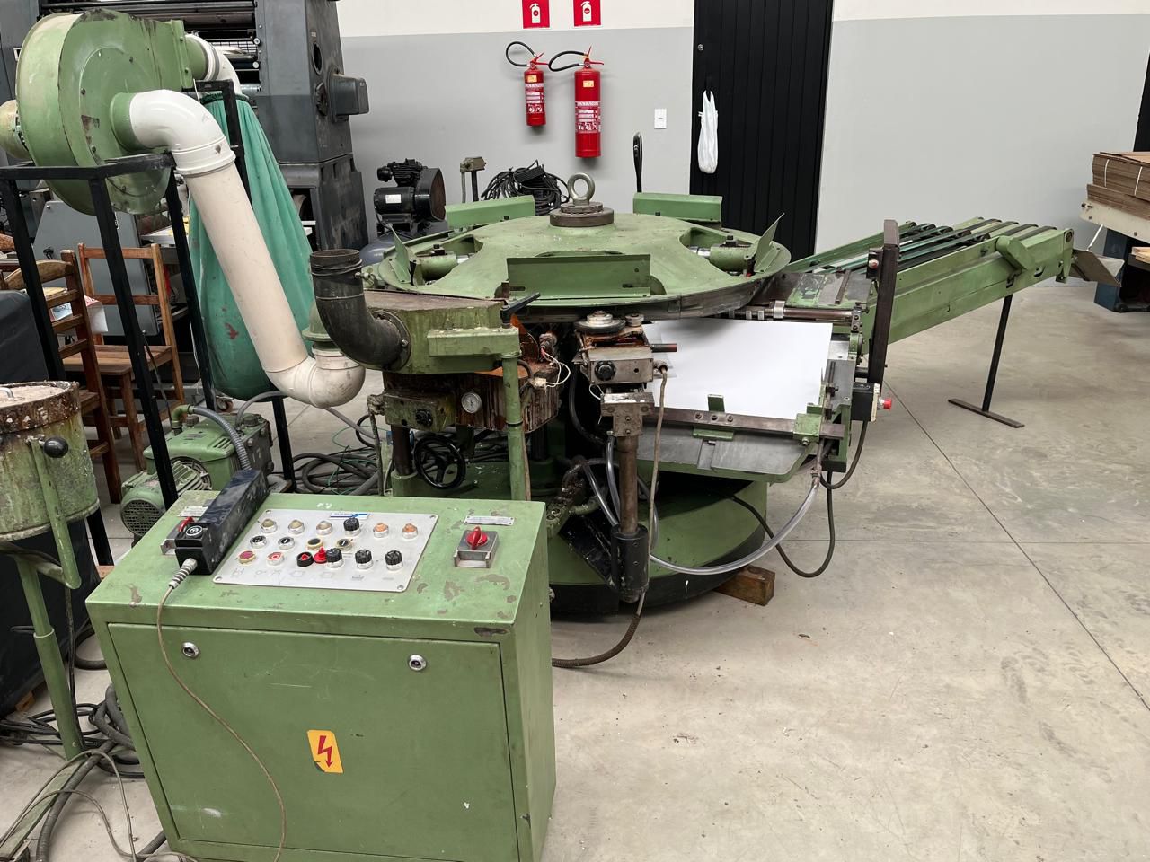 Coladeira de Capas Muller Martini Pony – Lombada quadrada – 5 gavetas de alimentação e capeiro automático com vinco. Coleiro proncipal e lateral para cola hot-melt. Produtividade média 2000/h