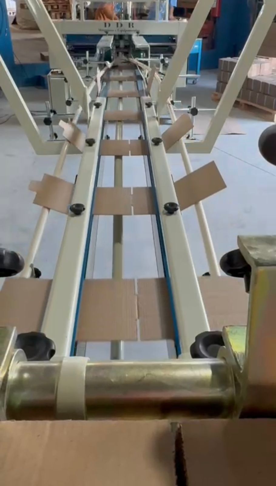 Coladeira Dobradeira Automática para caixas de papelão – 800 x 2000 puxada mínima – 150mm puxada máxima – 850mm com contadores, inversor de frequência e liberação de pacotes automáticos interessados entrar em contato: