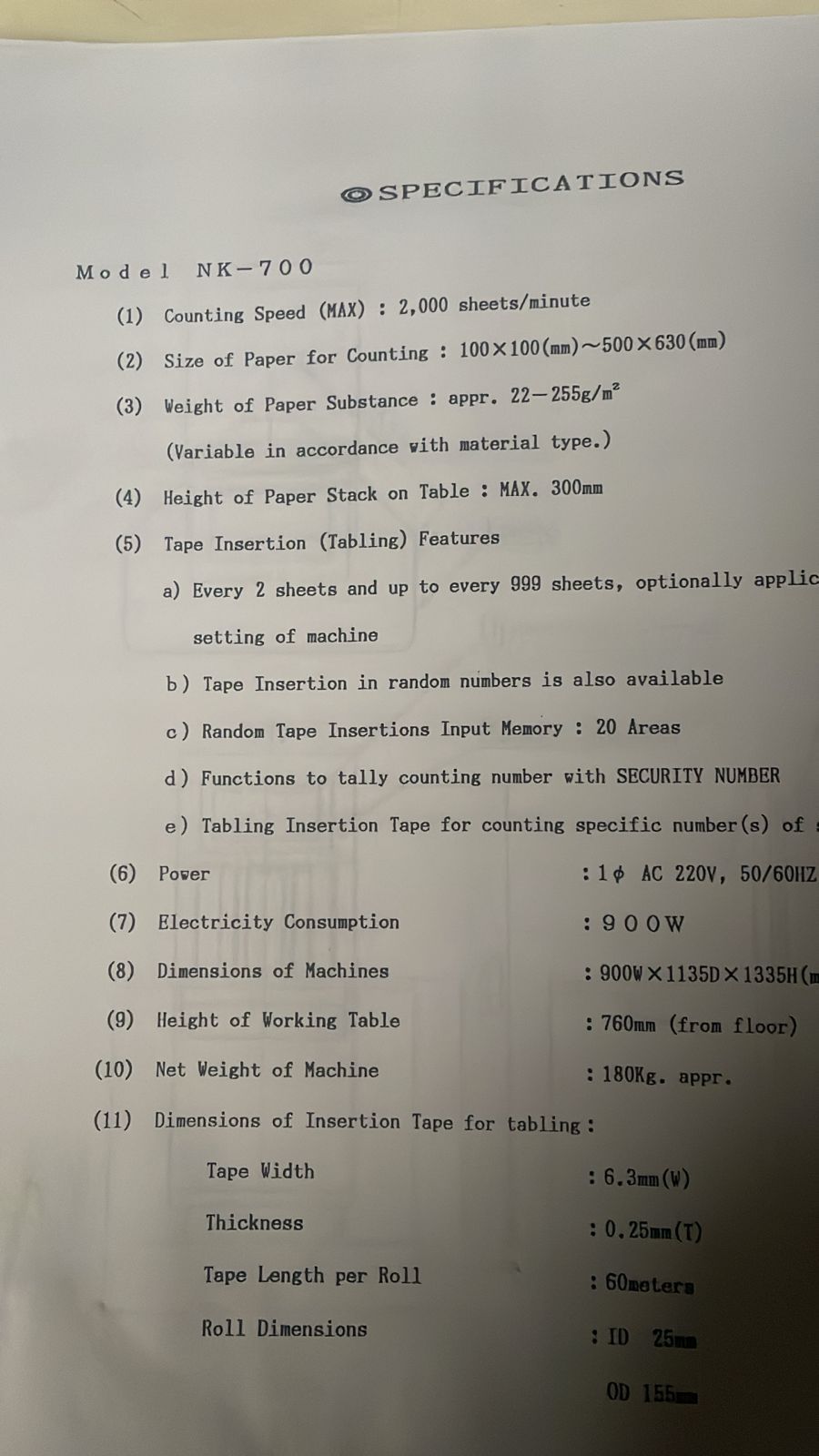 Contadora de folhas Akebono NK700 ano 1998