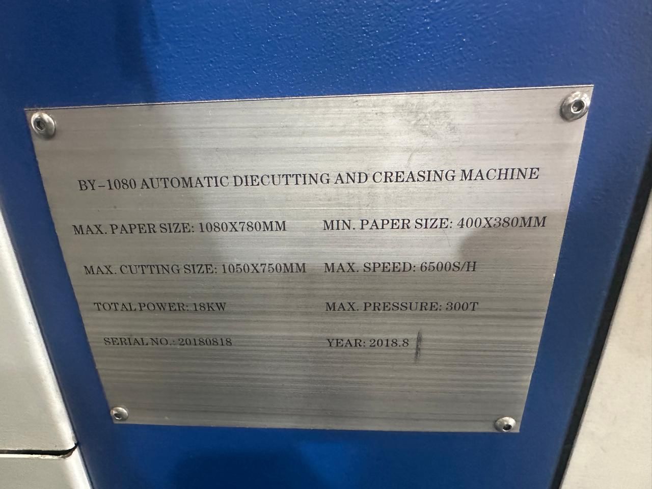 Corte vinco automatica – Boyu – sem destaque – ano : 2018 Formato : 780x1080mm Velocidade : 6.500 Otimo estado e produzindo Entrega : Março 2026