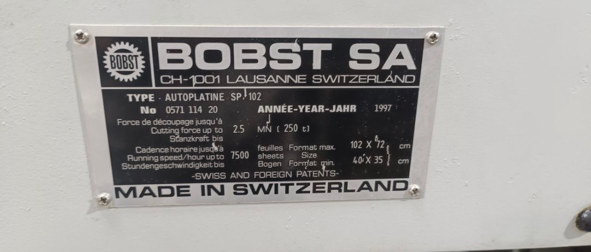 Corte vinco BOBST 102 ano 1997 sem destaque