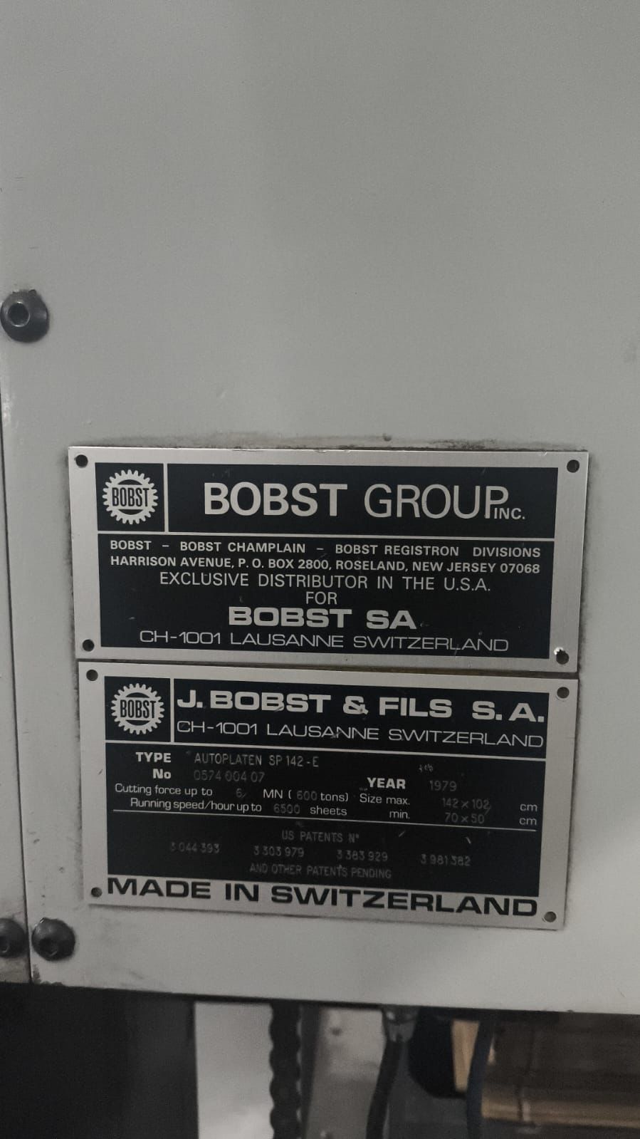 Corte vinco Bobst SP 142-E Formato 1.02×1.42 ano 1979 com destaque.