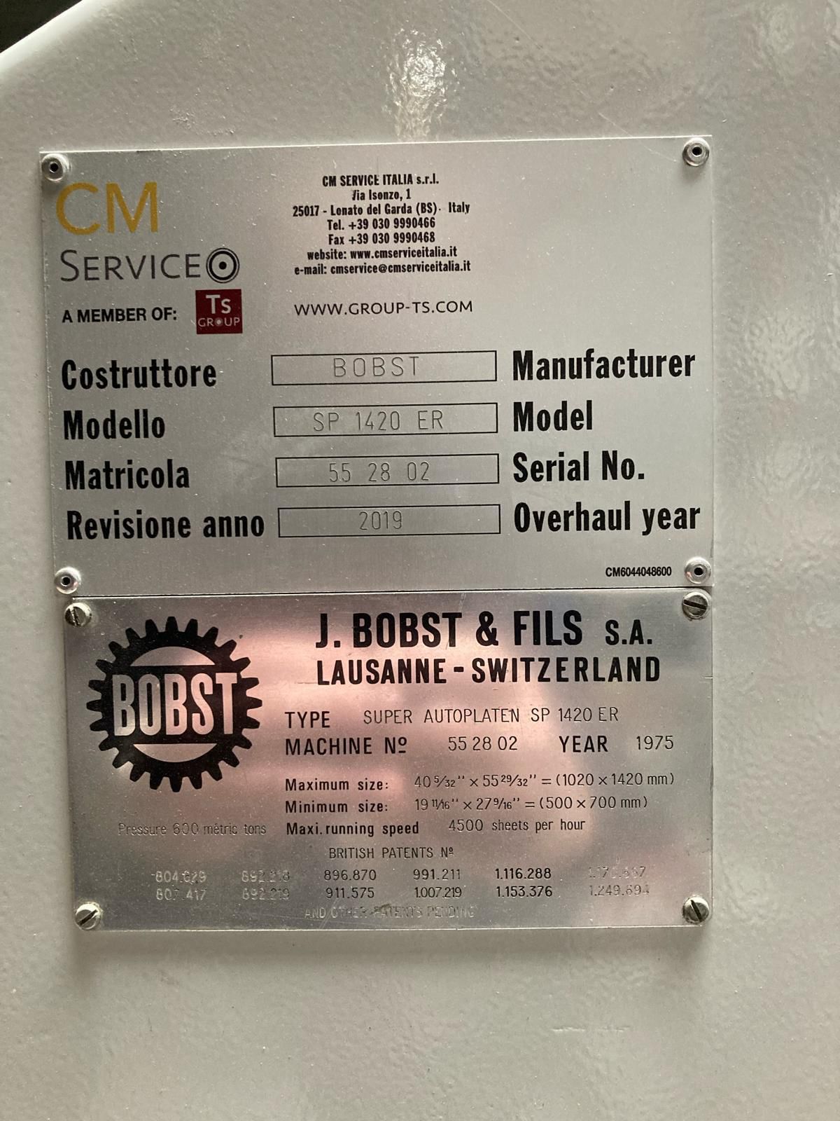 Corte vinco Bobst SP 1420 ER ano 2019 com duplo destaque. Máquina reformada pela Bobst