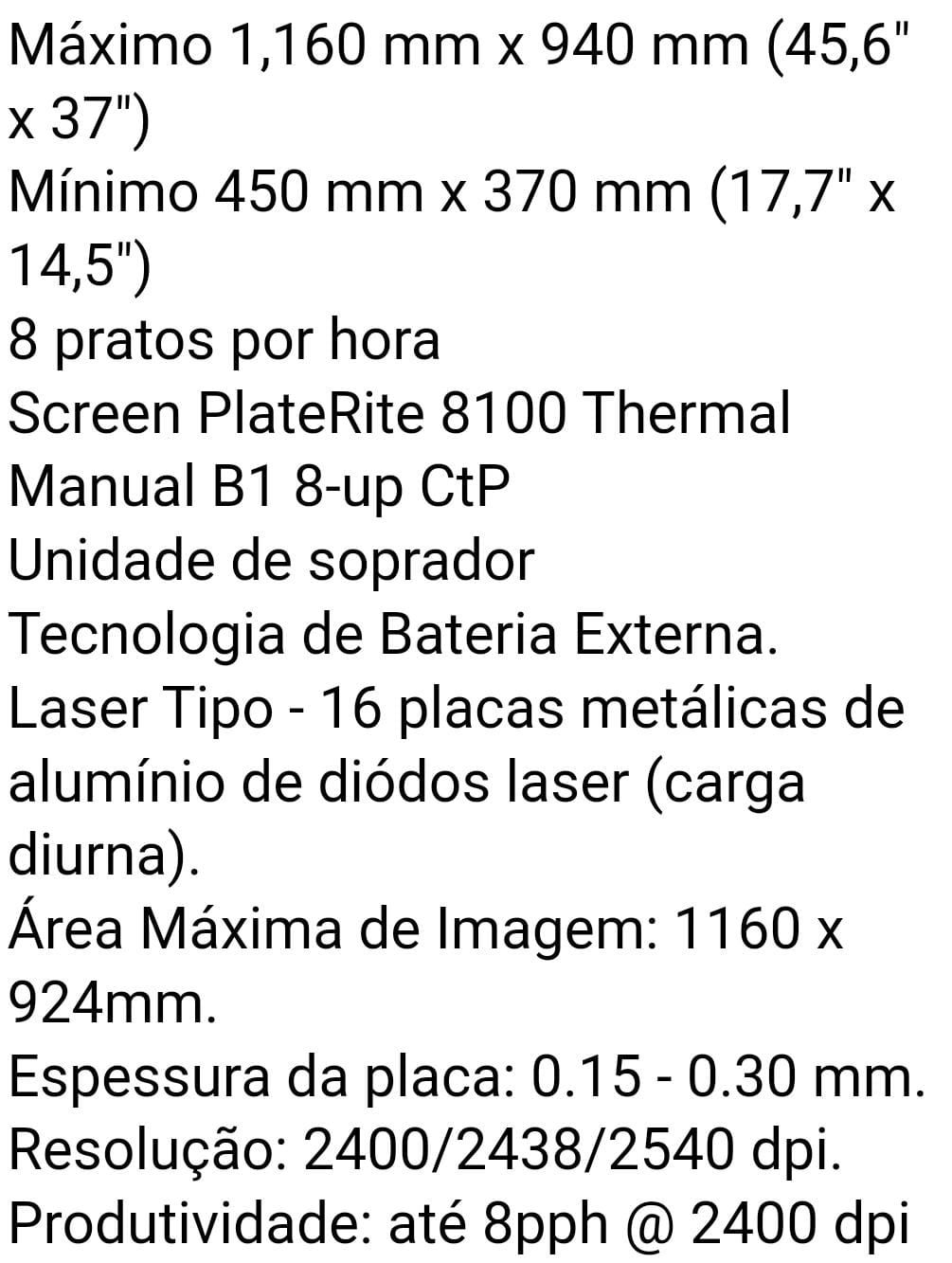 CTP SCREEN PT-R8100 Folha Inteira Ano 2005 Completo Computador Rip
