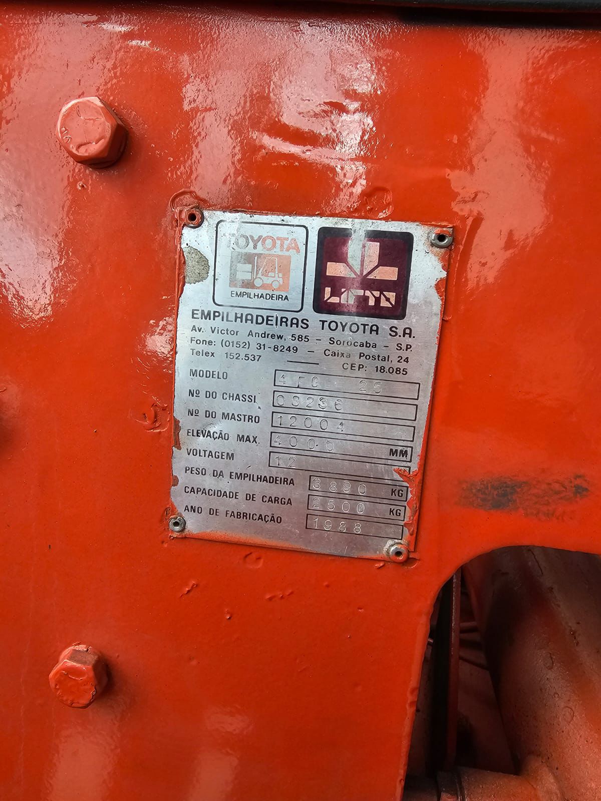 Empilhadeira Toyota 4FG 2,5T ano 1988, pouco uso.