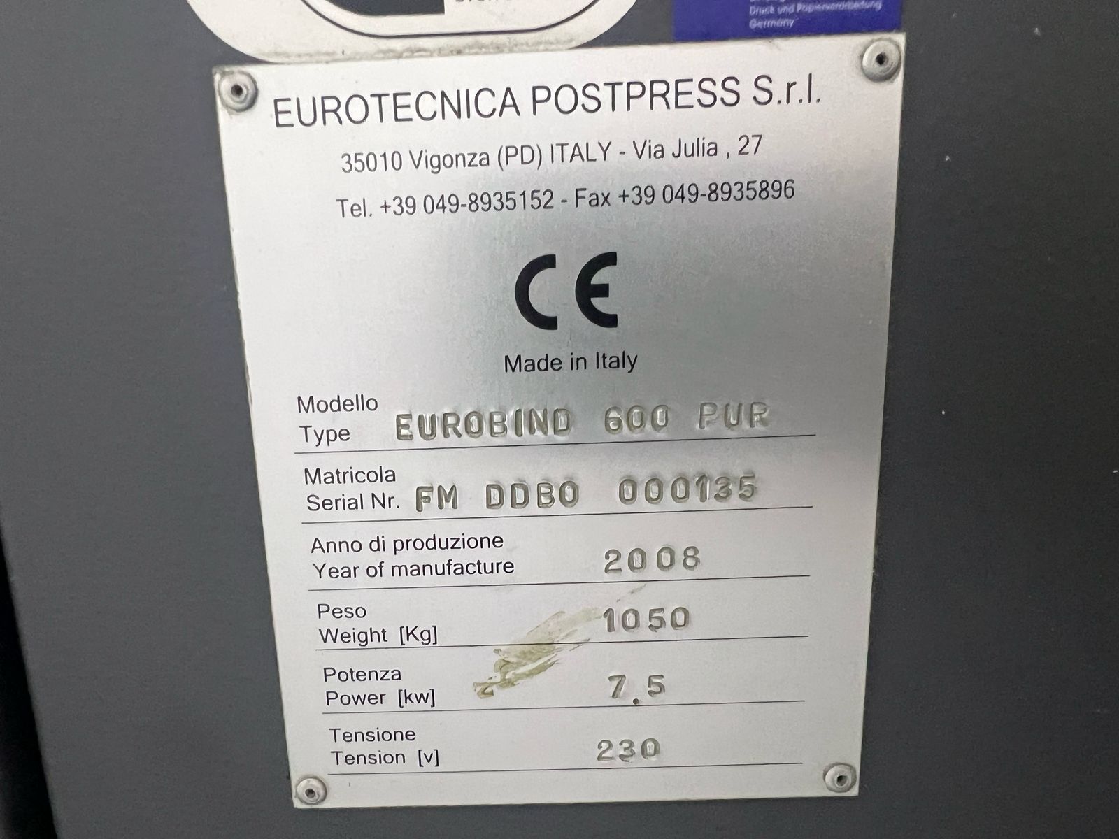 Eurobind 600 PUR Encadernadora de clamp único Ano: 2008
