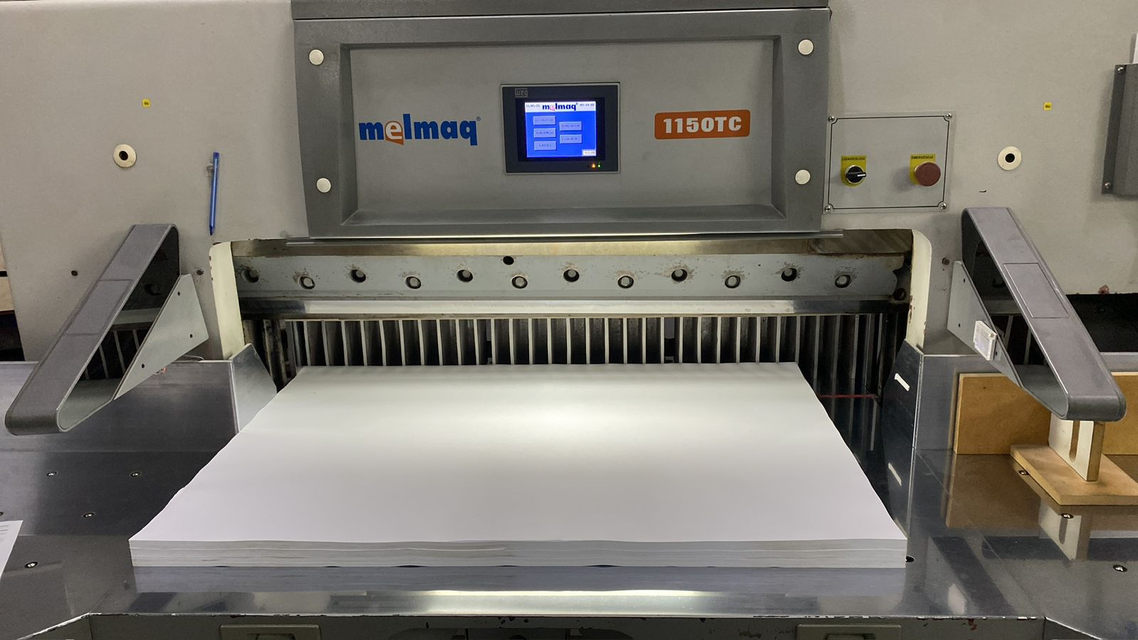 Guilhotina Melmaq 115cm ano 2011 ✅Programação de corte ✅Colchão de ar ✅Fotocélula