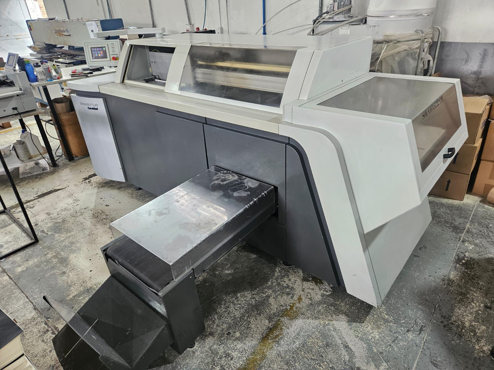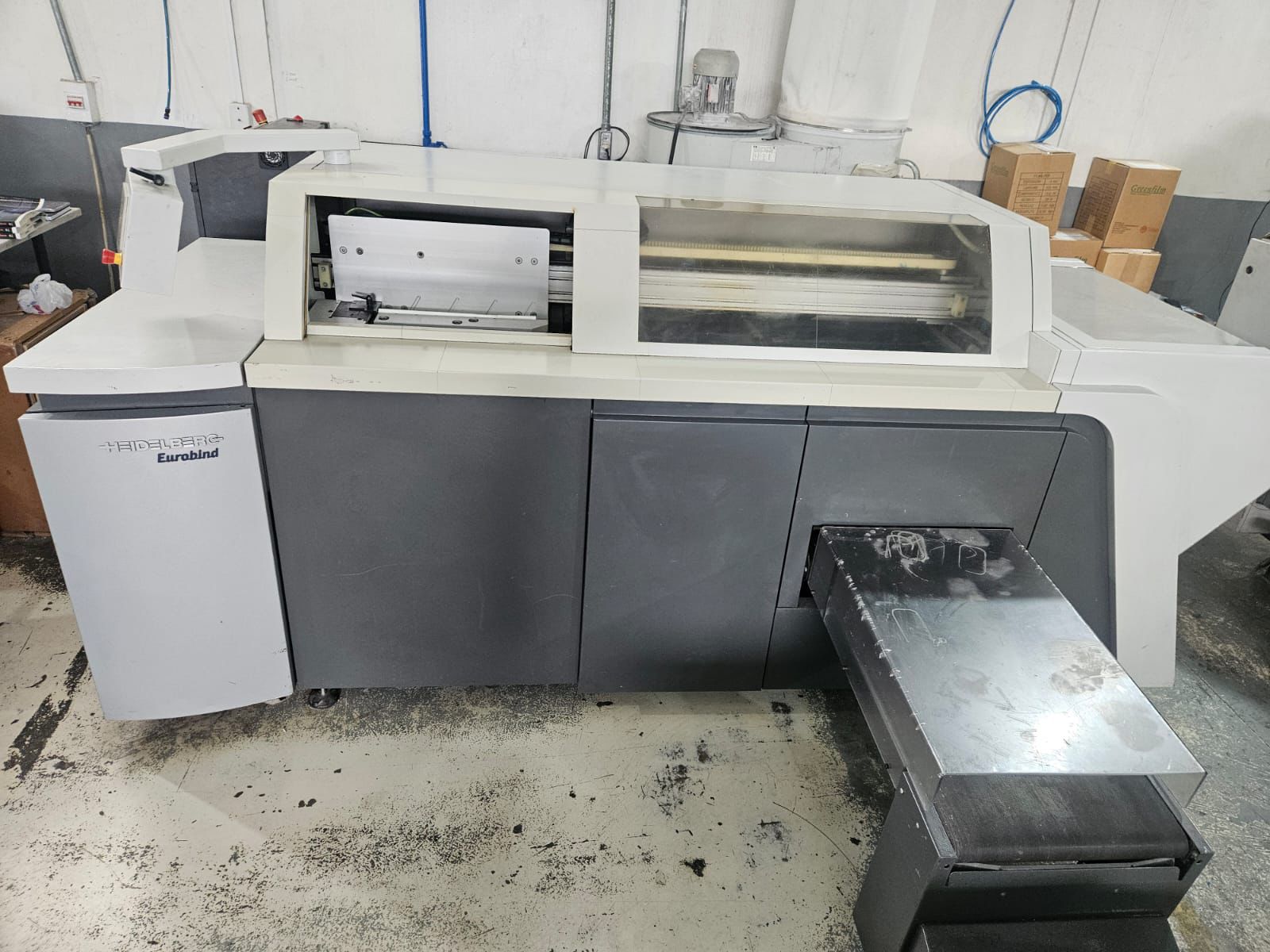 Heidelberg Eurobind 600 (Ano 2008) – Ficha Técnica 🔧 Dados Gerais • Fabricante: Heidelberg  • Modelo: Eurobind 600  • Tipo de máquina: Encadernadora / Perfect Binder (coladeira de lombada quadrada)  • Ano de fabricação: 2008  • Número de pinças: 1 (single-clamp)  • Velocidade máxima: ±600 ciclos / hora
