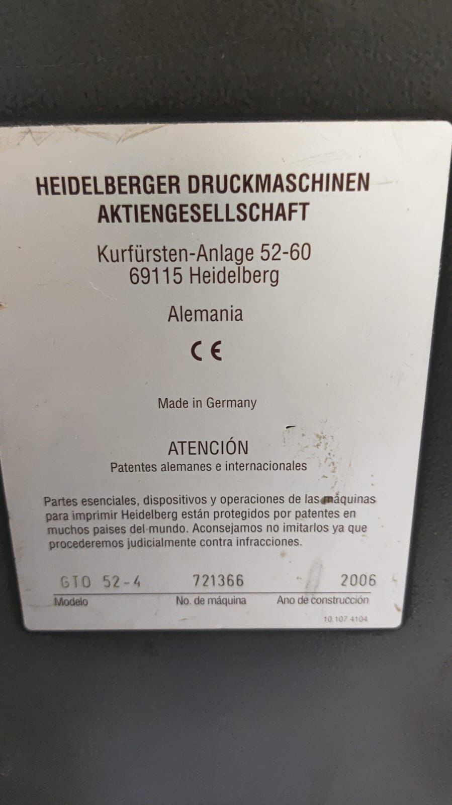 Heidelberg GTO Printmaster 52-4 ano 2006 alcolor, tinteiro palito.