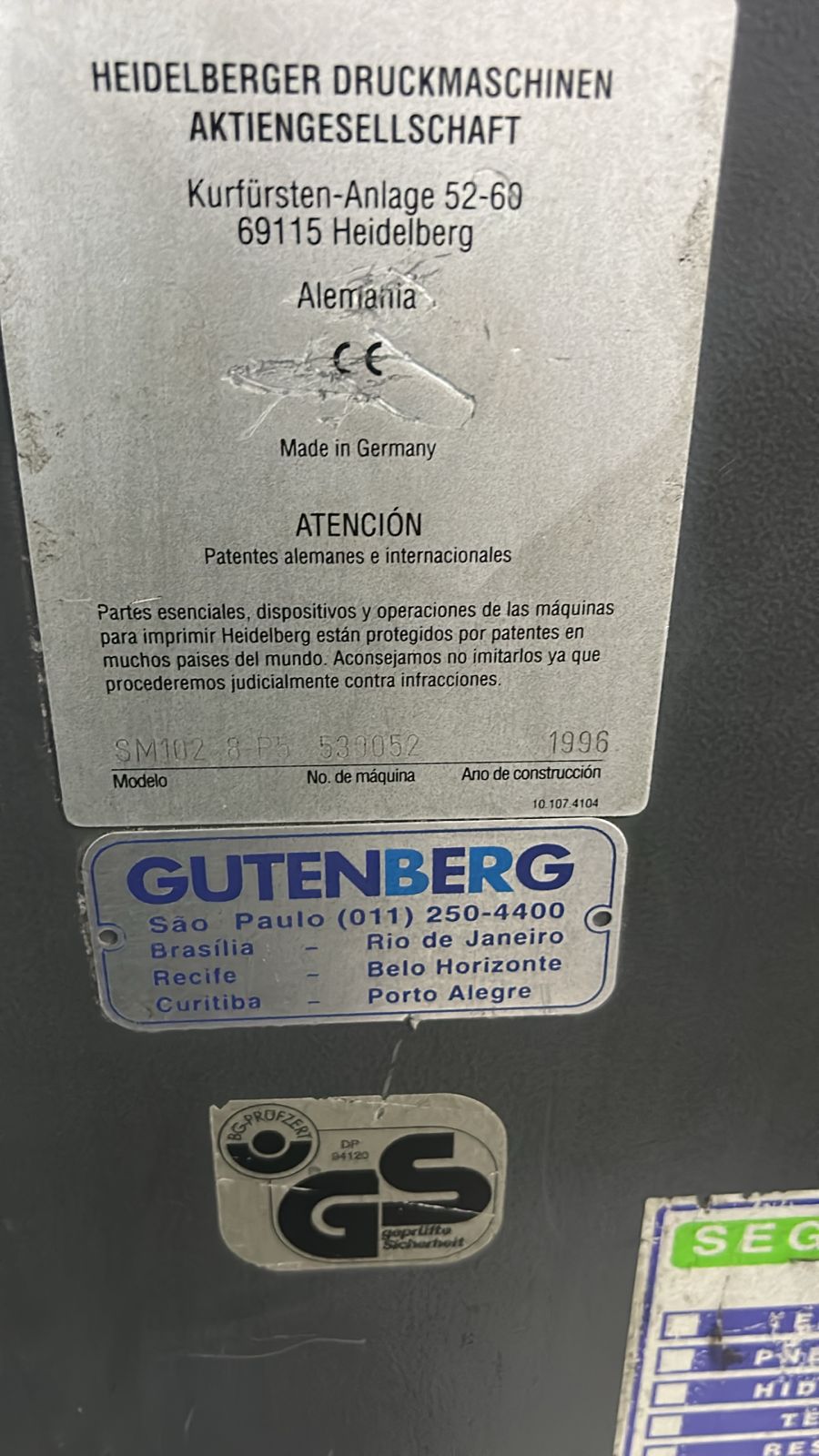Heidelberg SM 102 -5 ano 98 sem reversão, Easyplate