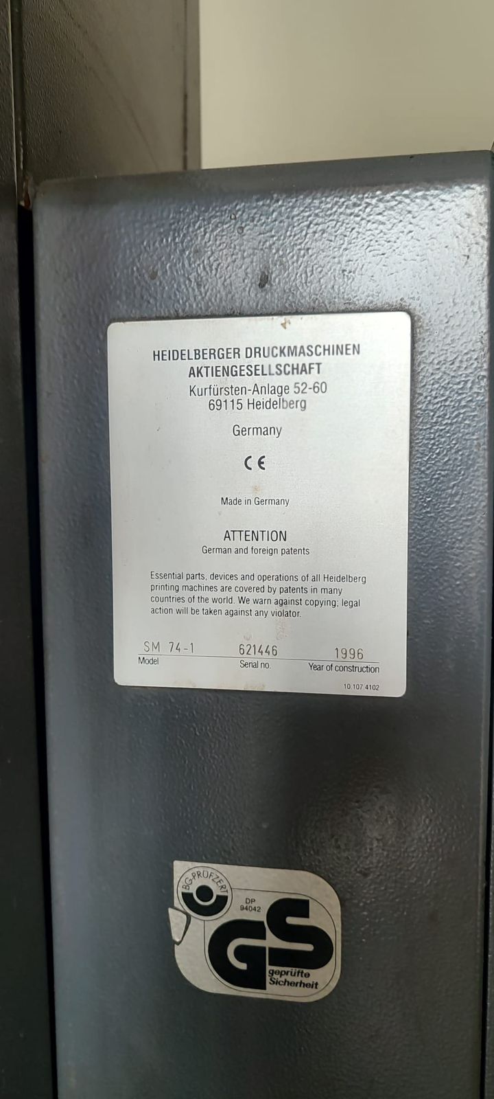 Heidelberg SM 74 – 1 ano 1996 impecável