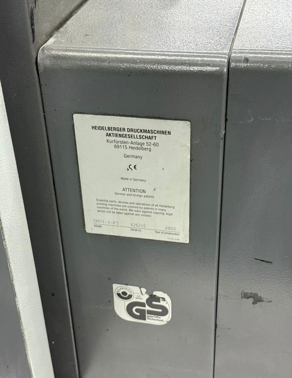 Heidelberg SM 74-4 Ano 2002, Cp2000, autoplate, lavadores de blanquetas, licença para CIP.