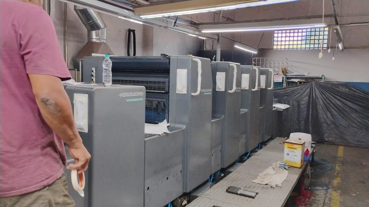Heidelberg SM-74+H+L(VERNIZ) Ano 1997 Cp-Tronik Cpc 1.04 – Todos os Ajustes Eletronicos. (Registro, Tinteiro, Agua, Verniz) Troca de Chapa Automatica Todas Unidades em Funcionamento Geladeira Tecnotrans