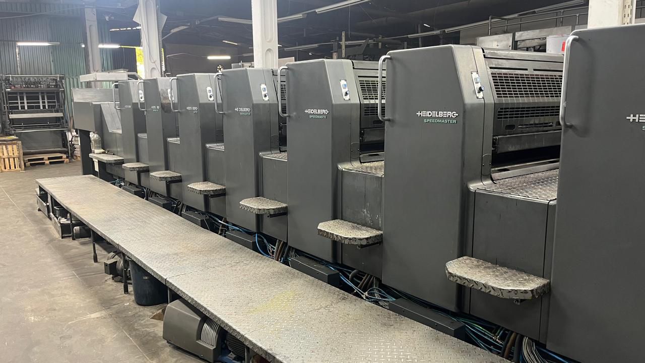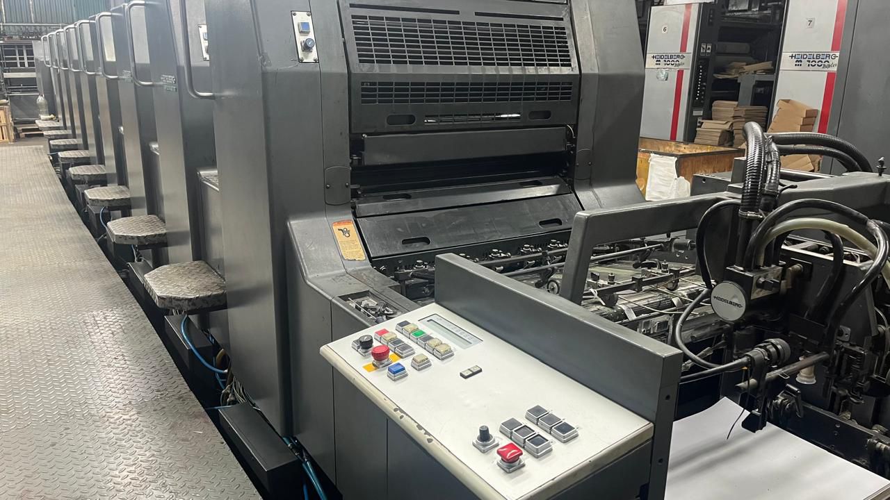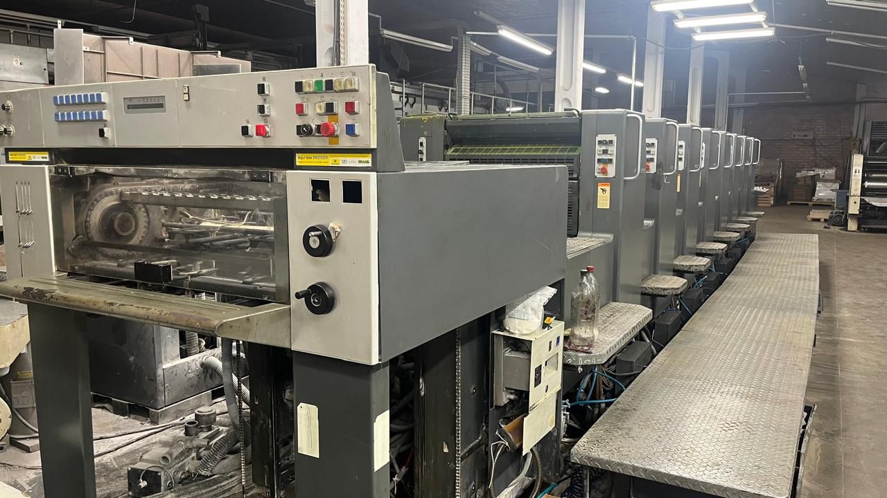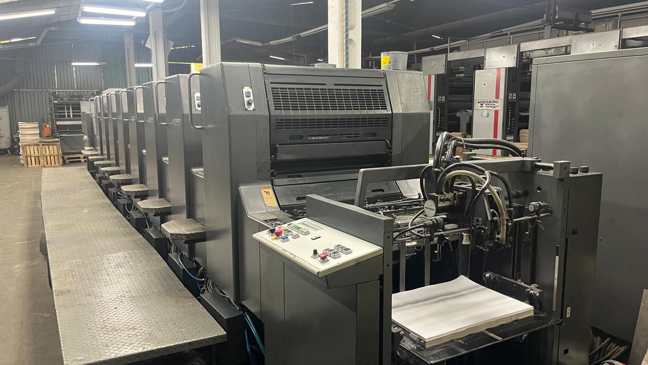 HEIDELBERG SM74/8 ano 1998 52×74 Autoplate Cpc104 Registro lateral, frontal e diagonal Lavador automático Lavador de contra pressão Secador IR Reversão 4/4 Technotrans Rolagem refrigerada 69 milhões de impressão