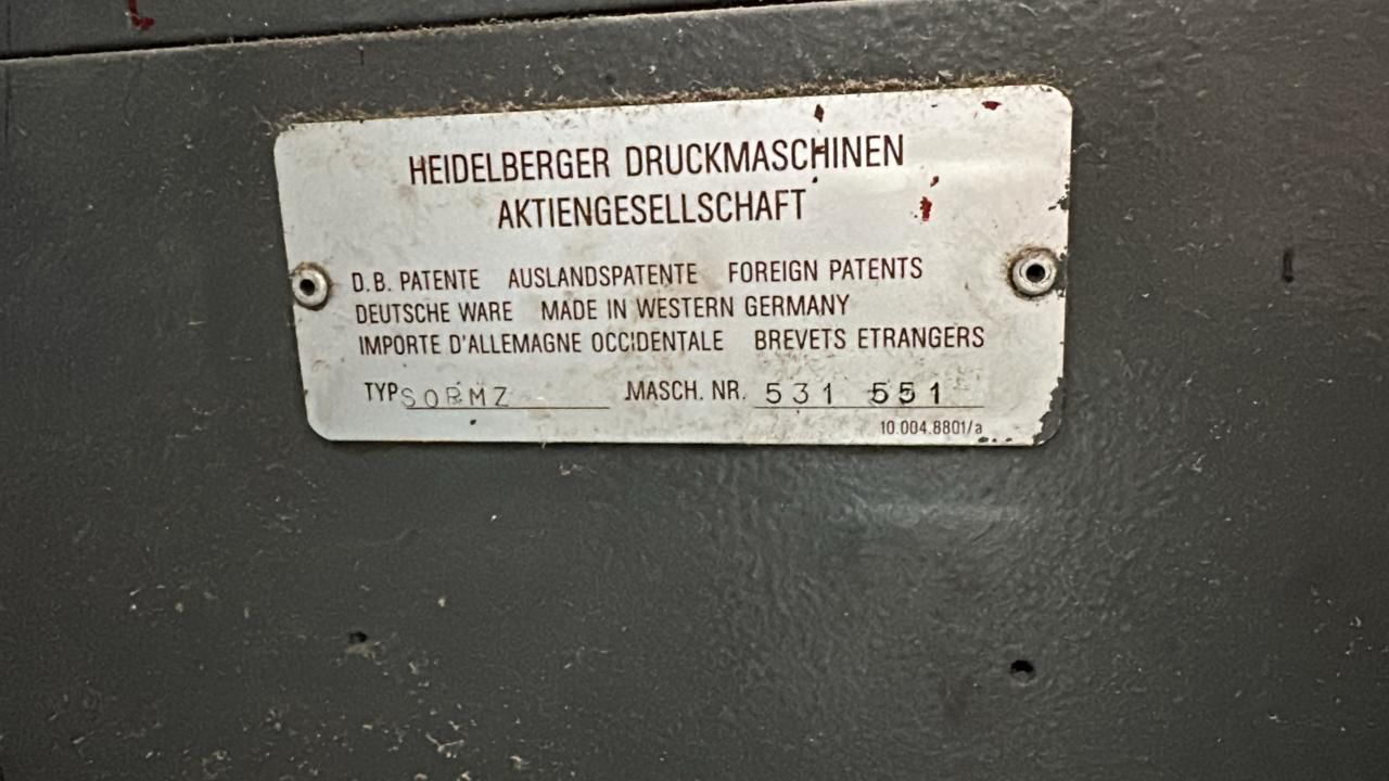 Heidelberg Sormz formato 52×74 ano 1986 mollha convencional.