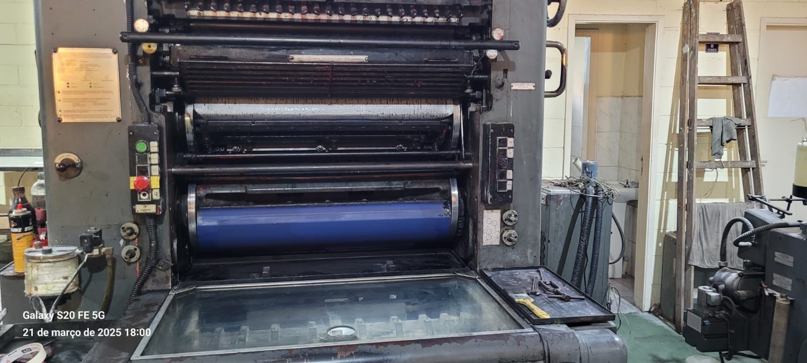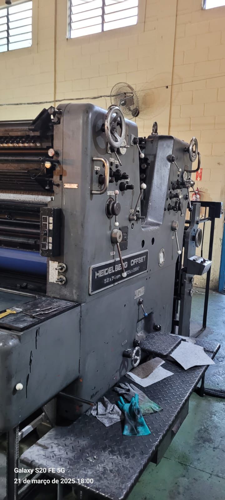 Heidelberg Sormz formato 52×74 máquina está adaptado pra molha sem moletom mas precisa fazer rolos e ajustar, rodando só sacolas chapados seco.