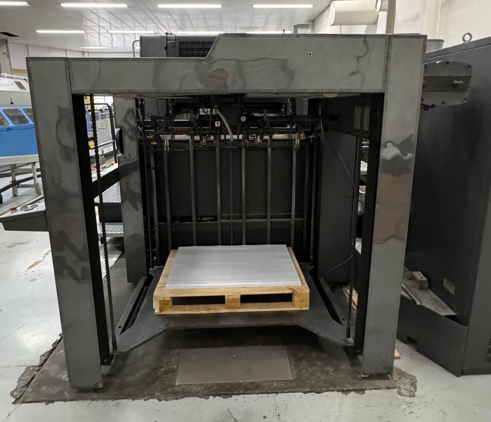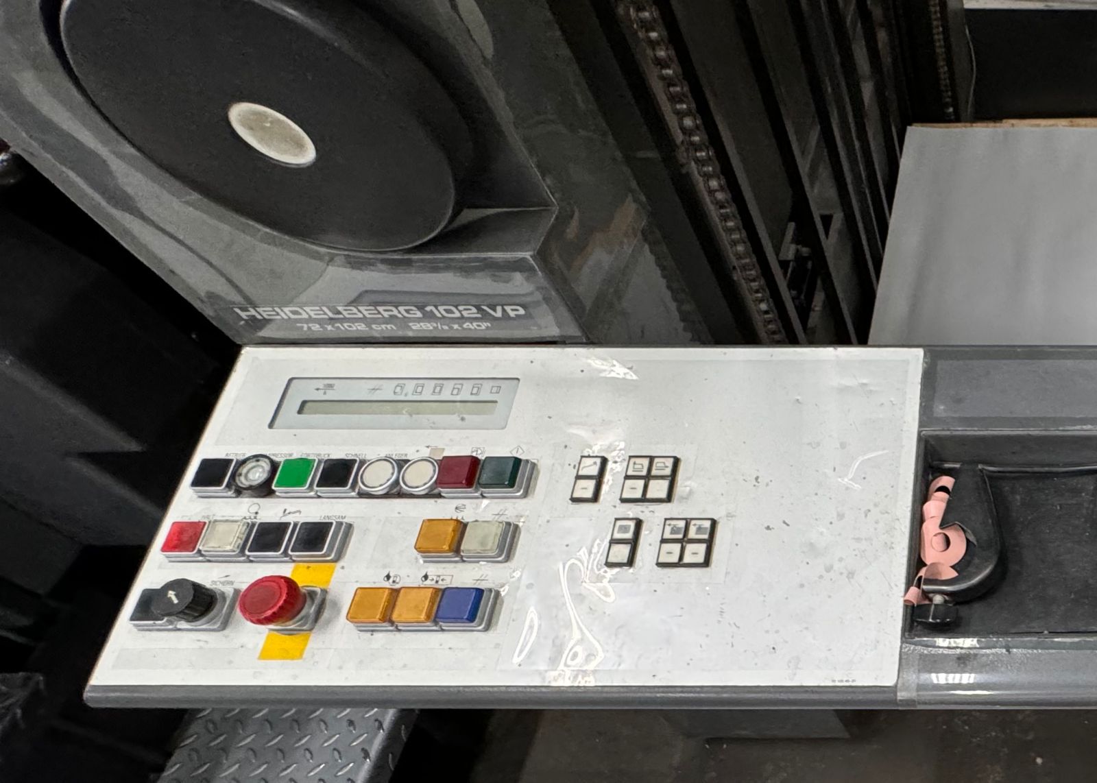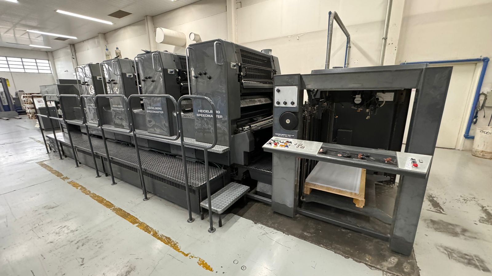 IMPRESSORA OFF-SET HEIDELBERG SM – SM 102– 4 CORES COM REVERSÃO 2X2* – Número de série: 535647 – Ano: 1994 – Impressão: 4 cores – Reversão: 2×2 – Tiragem: 348 MM – Formato: 72 x 104 cm – Velocidade máxima sem reversão: 13.000 fls/hr – Velocidade máxima com reversão: 12.000 fls/hr – Troca de chapas : semi automática – Sistema de molha Alcolor – Controle remoto dos tinteiros e registros – CPtronic : Controle eletrônico de funções – Preset : Pré ajuste de formatos – Lavadores automáticos de rolaria e blanqueta – Pulverizador Grafix – Refrigeração Technotrans – Ferramentas e manuais
