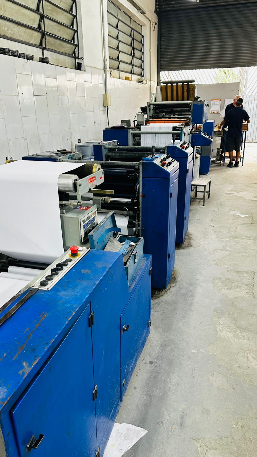 Impressora rotativa Segue configuração Bobina formulário continuo com alturas 8.5 11. 12 . 14,2/3 Bobina em folhas Largura máxima 520×307. Velocidade 18 mil Máquina completa