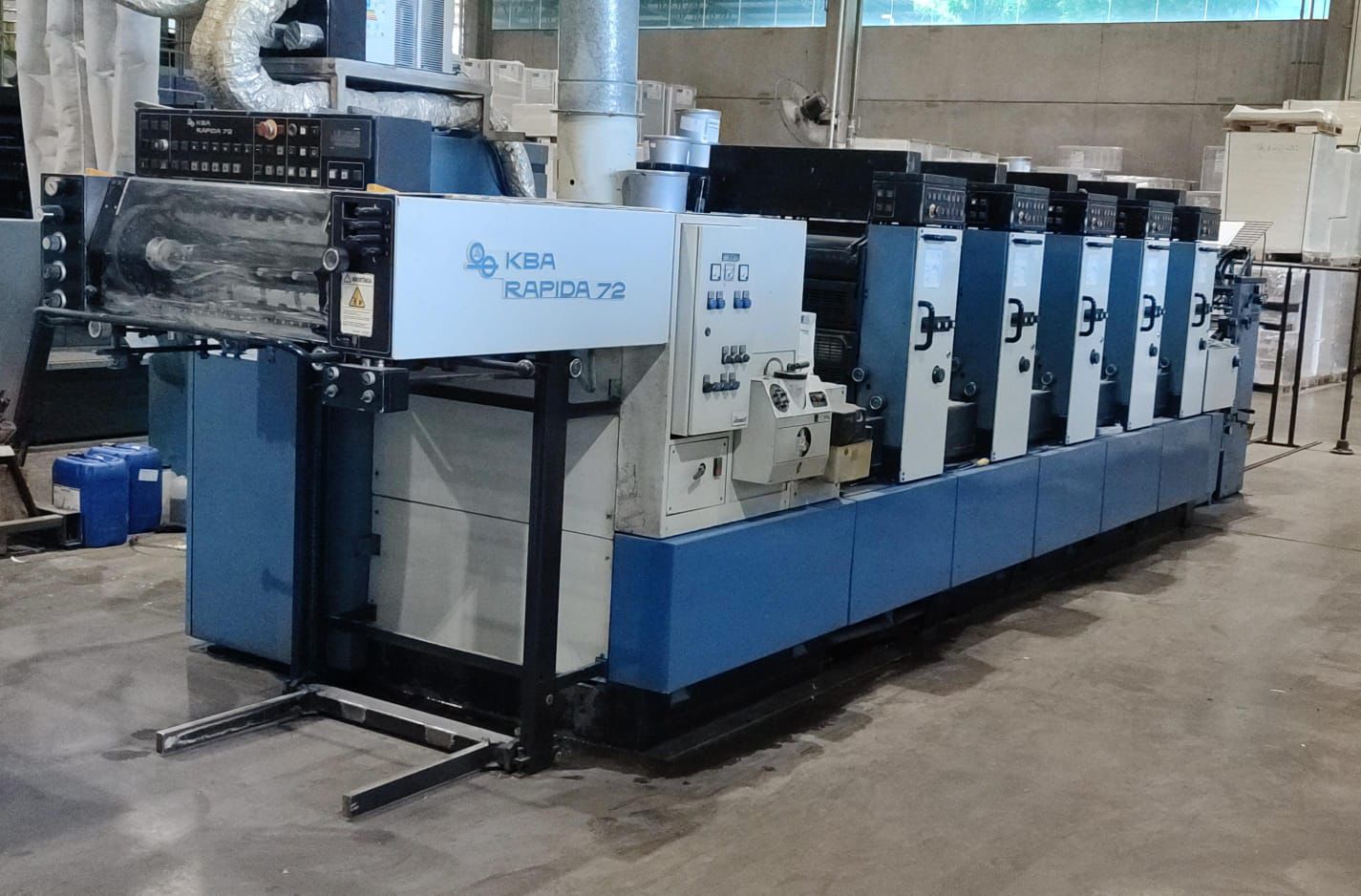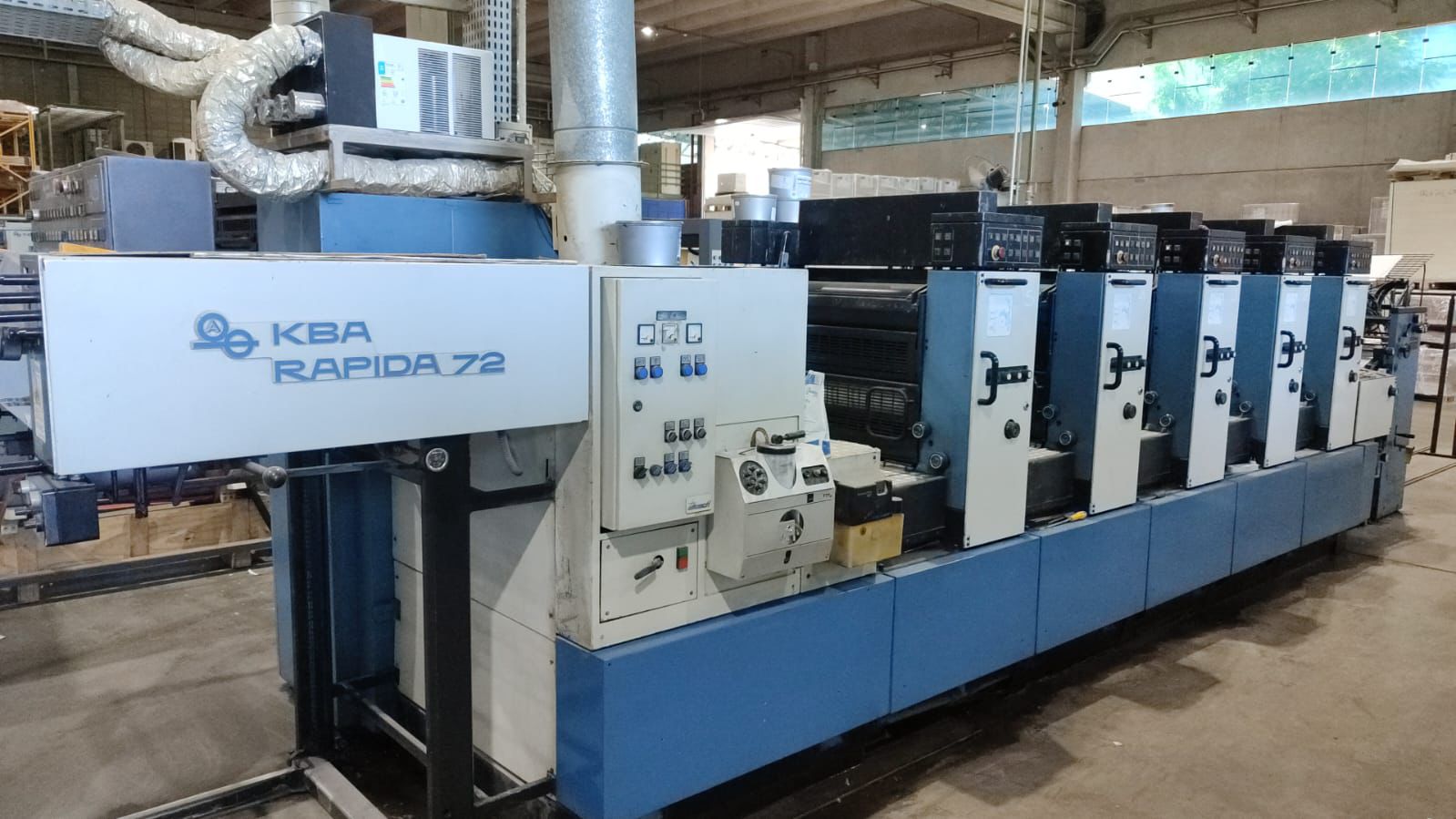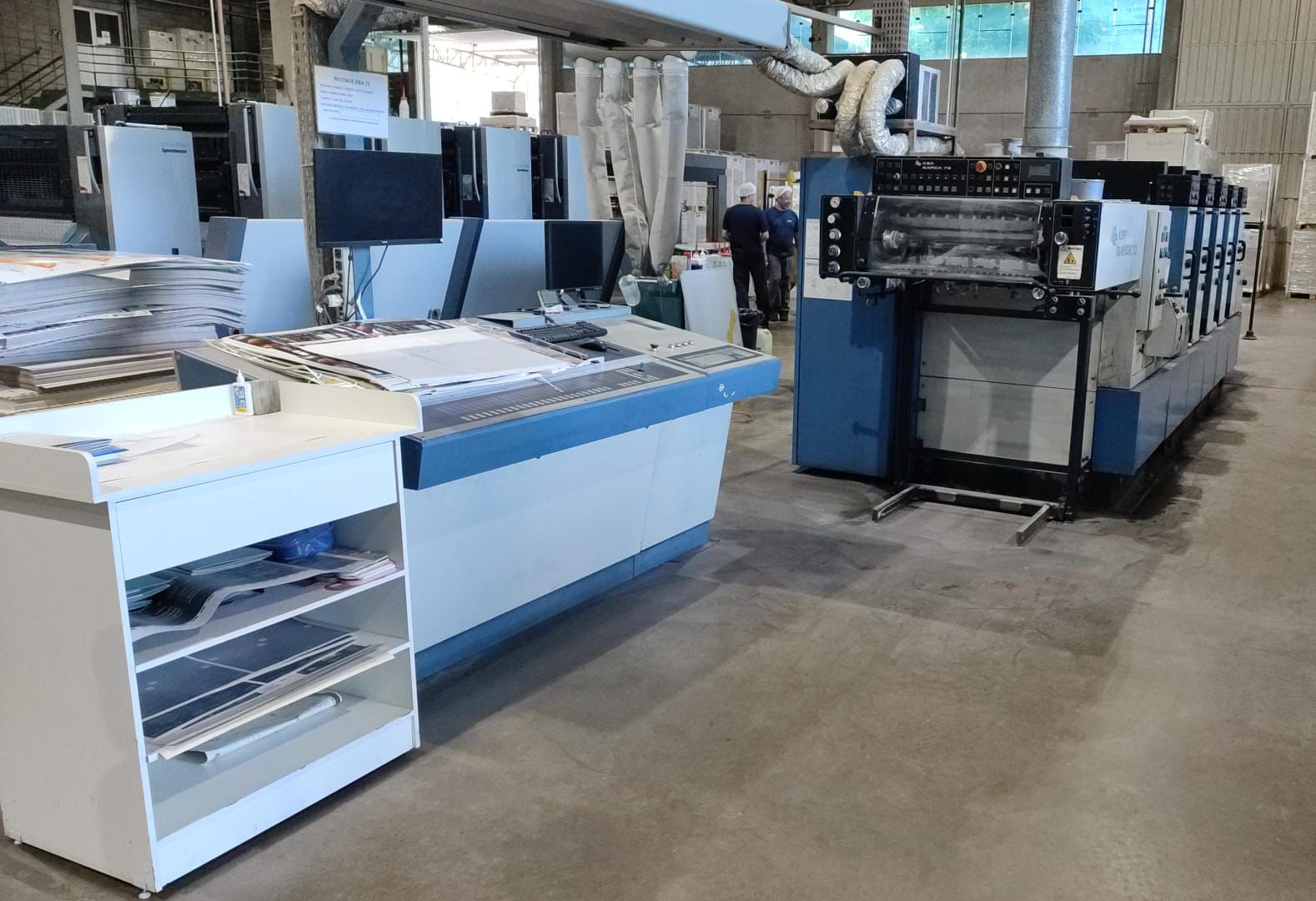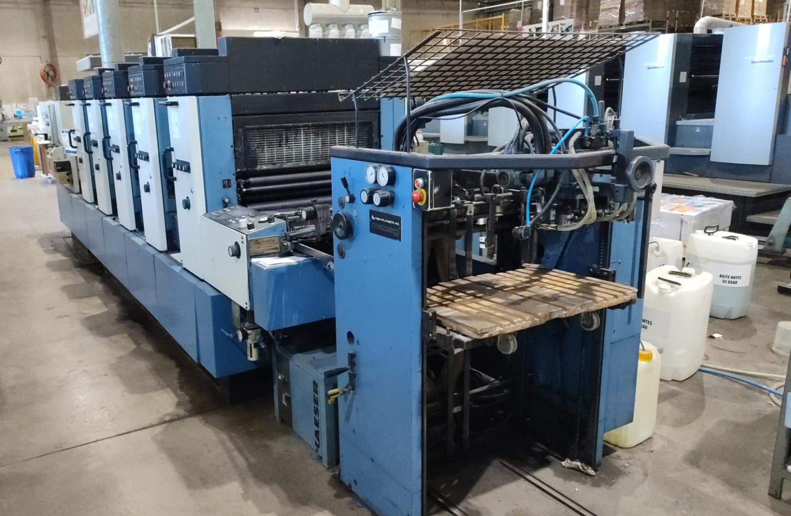 Kba rápida 72 -5 cores ano 1998 15000 folhas hora. Tinteiro eletronico. Sistema de molha com rolo cromo e borracha (alcoolor). Troca semi automatica de chapas. Secador IR. Sistema de lavagem automatica de blanquetas operacionais. Formato 52×72 ✅Apenas 65 milhões de impressões.