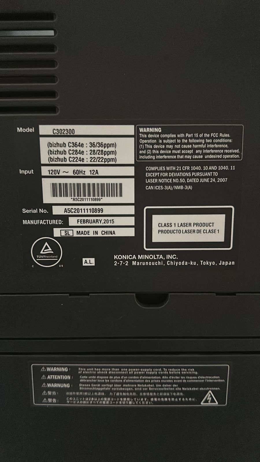 Konika Minolta C284E ano 2015