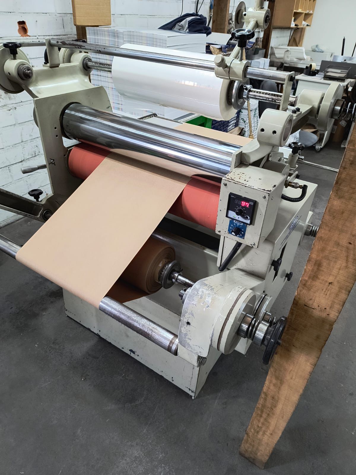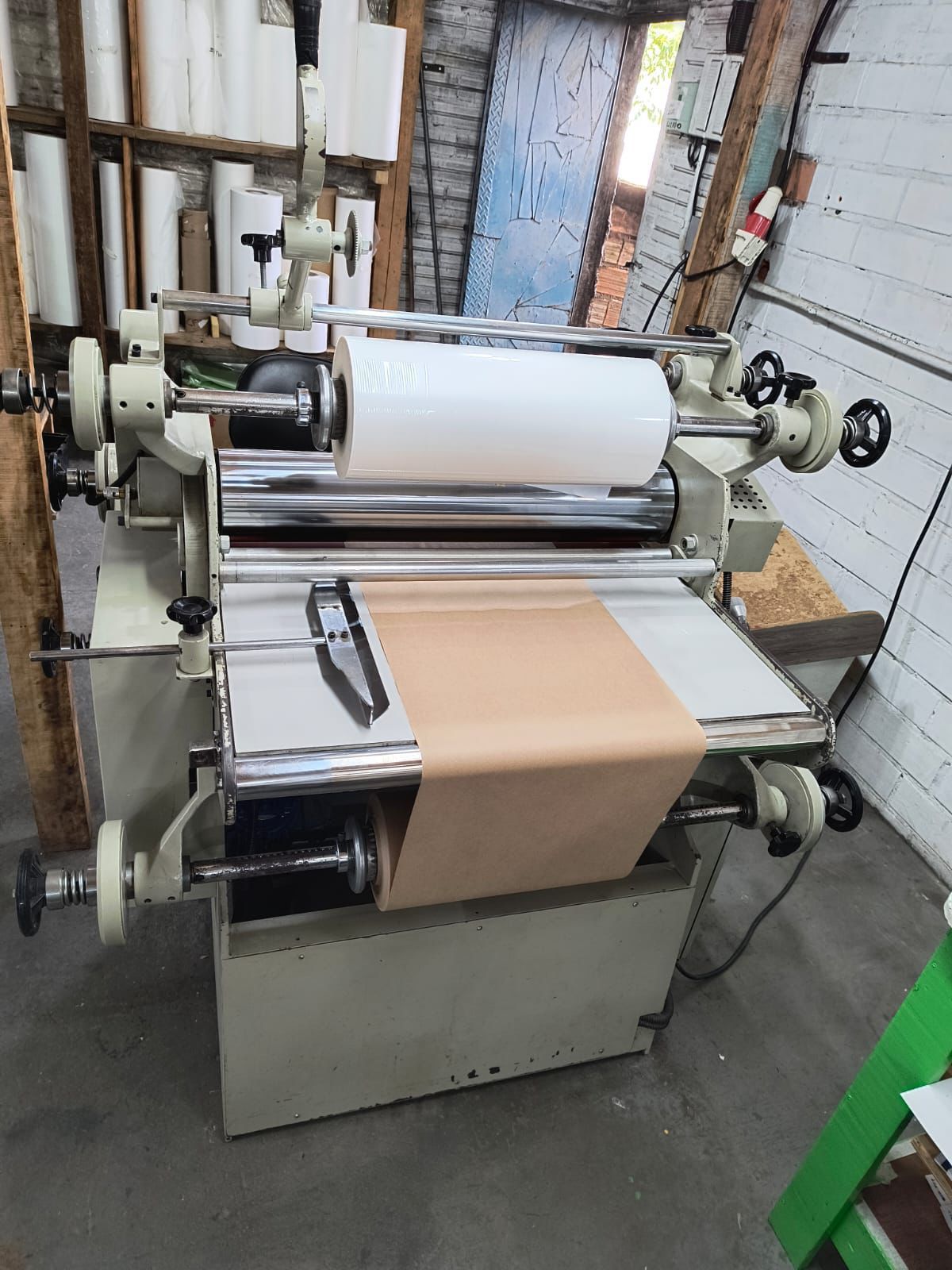 Laminadora e plastificadora ASMR 80cm ano 2017 ✅rolo cromo zero ✅Rolo borracha em ótimo estado ✅Acompanha um suporte com disco para picote.