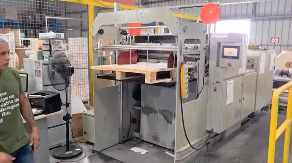 Resmadeira ano 2019 Largura da máquina 1100mm diâmetro da bobina 1500mm Estou vendendo uma máquina de cortar papel. Mas só posso entregar final de Dezembro, quando chega a minha nova máquina. Essa máquina tem uma grande vantagem em relação às outras máquinas de Facão. Ele tem uma precisão de corte muito grande e não precisa entrar com o papel na guilhotina para acertar. Eu comprei nova em 2019 e agora preciso de uma com maior produtividade. Comprei uma no mesmo sistema de guilhotina.