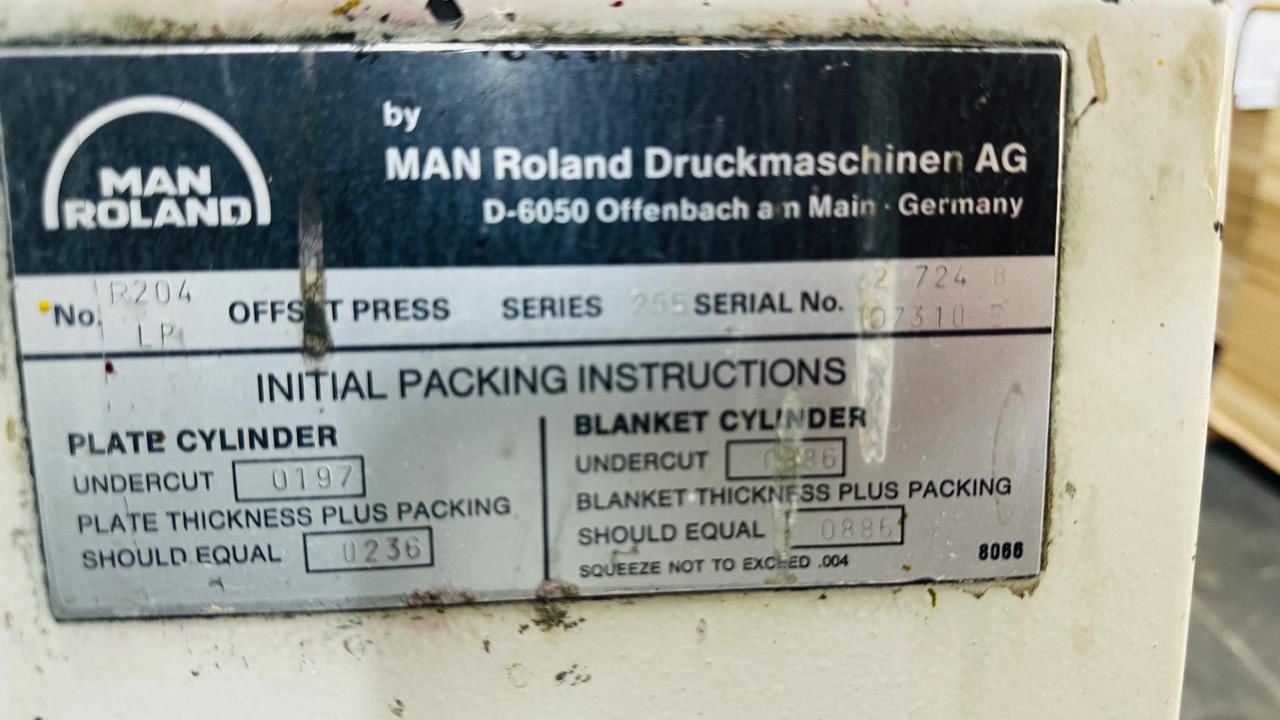Roland 200-4 cores ano 1995 Formato 52×74 4 barras pinças Alcolor original Máquina com apenas 86 milhões de cópias