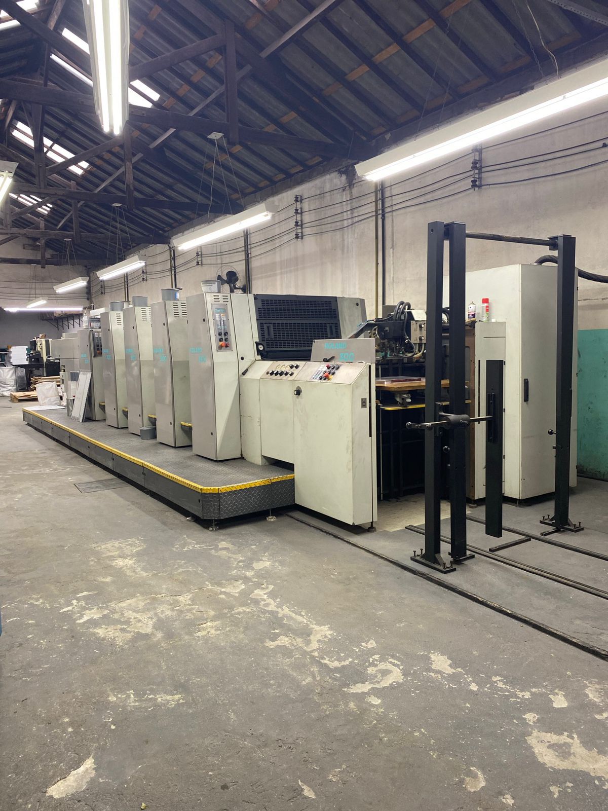 Roland 300 -4 + verniz ano 2000 Formato 59×74 Reversão 4/0 x 2/2 Troca de chapa semiautomática Máquina a toda prova . 🛑OBS. Verniz não está em operação