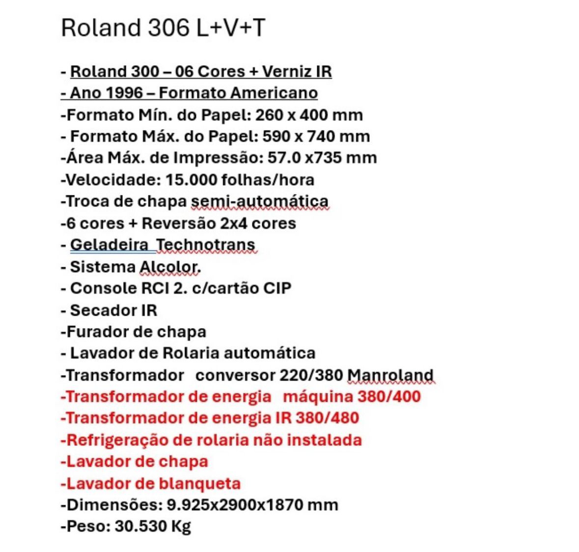 Roland 306 L+V+T ano 1996 Formato 59×74 🛑Obs. Descrição completa nas fotos. Máquina no sul do Brasil 🇧🇷