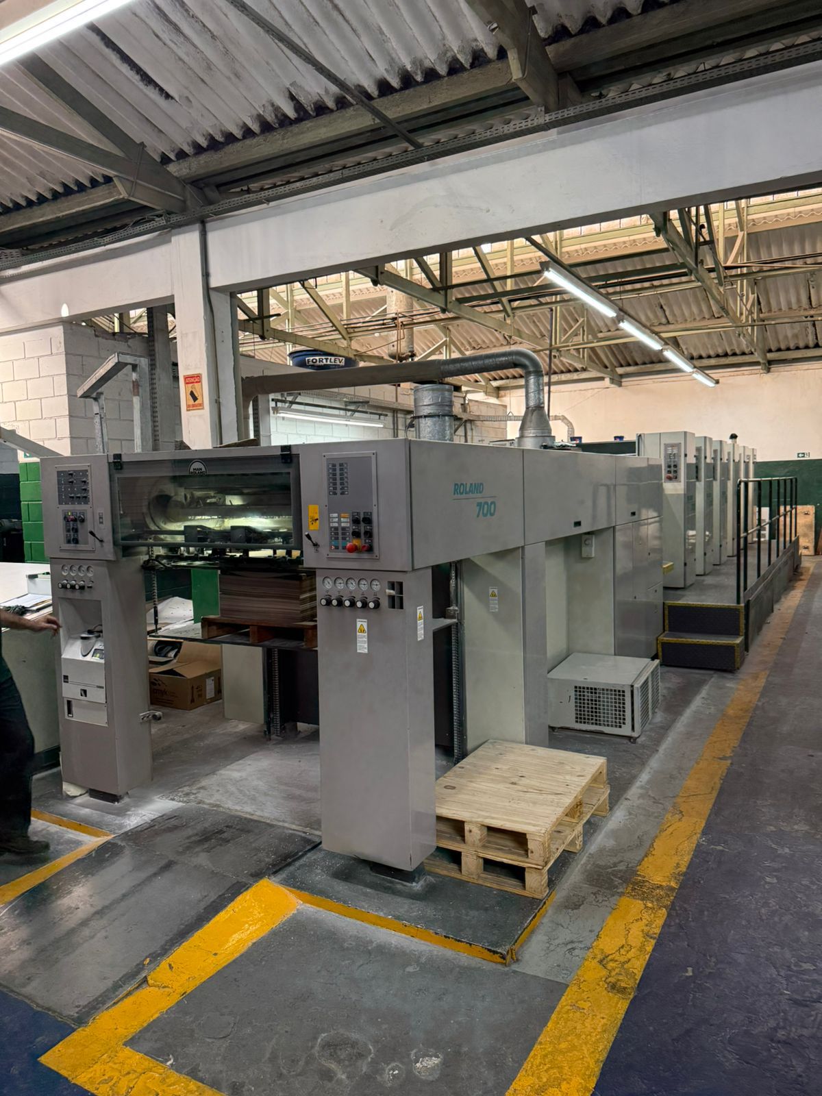 Roland 705+Lv – 2001 74x104cm Verniz Anilox Secador infravermelho RCI Placa automática PPL 15.000 p/h Geladeira Technnotrans