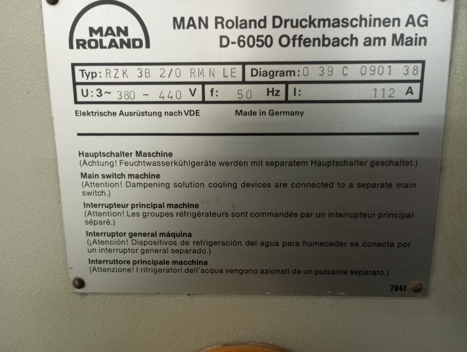Roland Rekord RZK3B+LE 🎨 2 Cores + Unidade de Verniz 📐 Formato: 71 x 102 cm 📅 Ano: 1992 📍 Localização: – RS