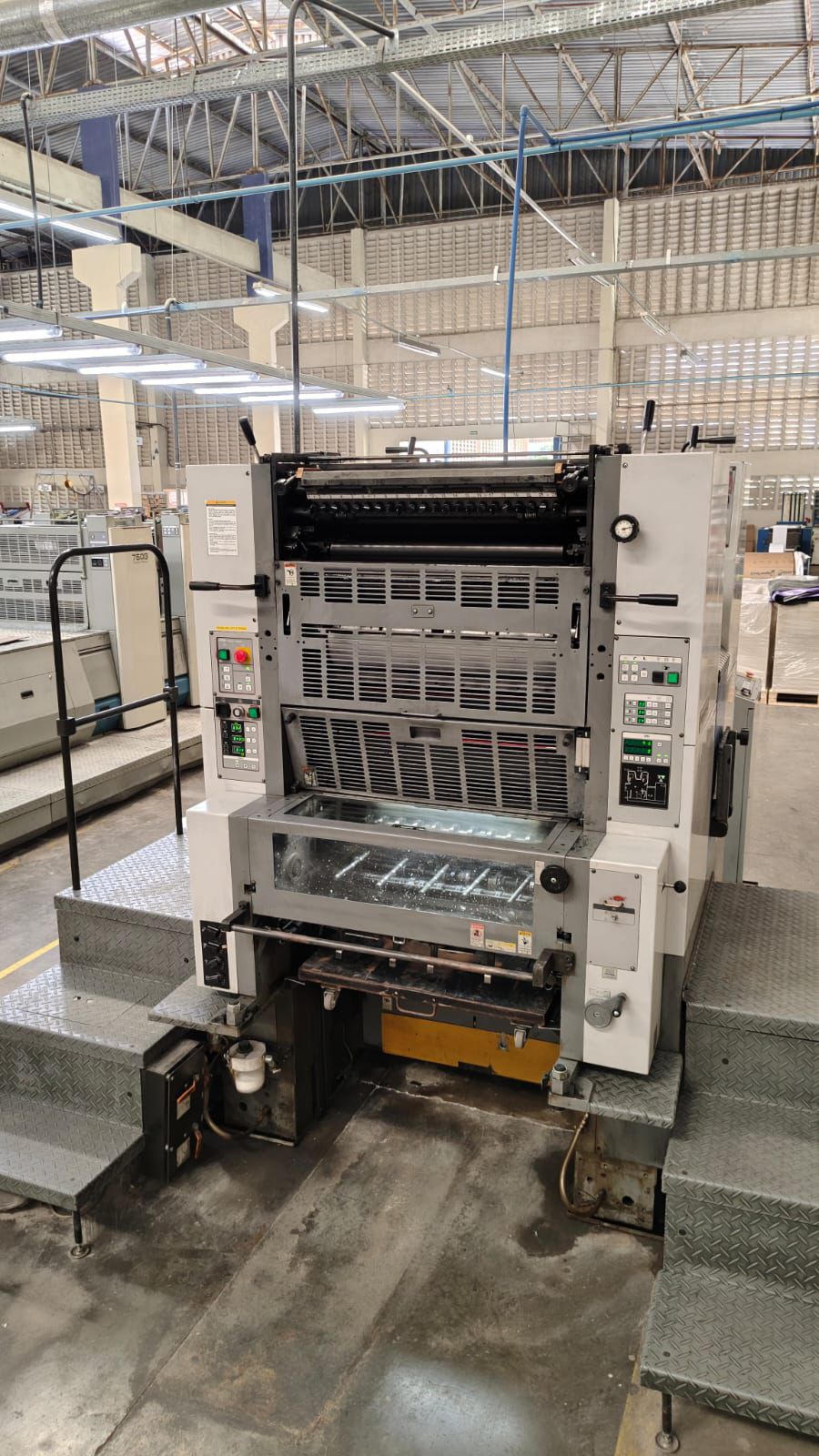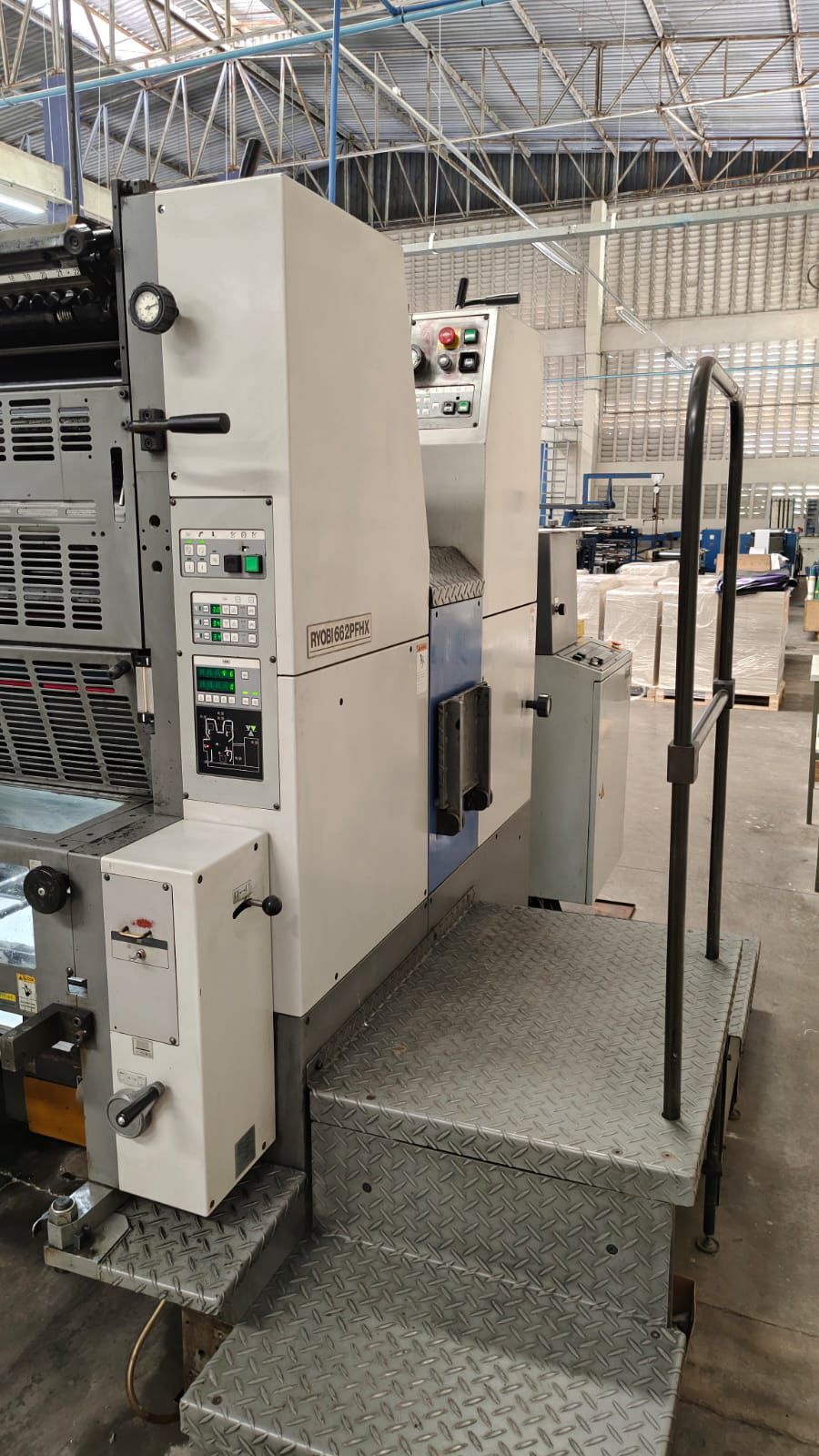 Ryobi 662 PFHX é uma impressora offset de 2 cores fabricada no Japão, projetada para alta performance em formatos de papel até 68,6 x 50,8 cm. Este modelo é amplamente utilizado para impressões comerciais de médio porte devido à sua velocidade de até 13.000 folhas por hora. O sufixo “PFH” em modelos similares (como o Ryobi 662-PFH) indica que a máquina possui um mecanismo de reversão (perfector), permitindo a impressão frente e verso em uma única passagem (configuração 2/1 ou 1/1), sem inverter o papel. Com isso consegue-se fazer impressão frente e verso, 1×1, com espaço de uma pinça apenas no papel.