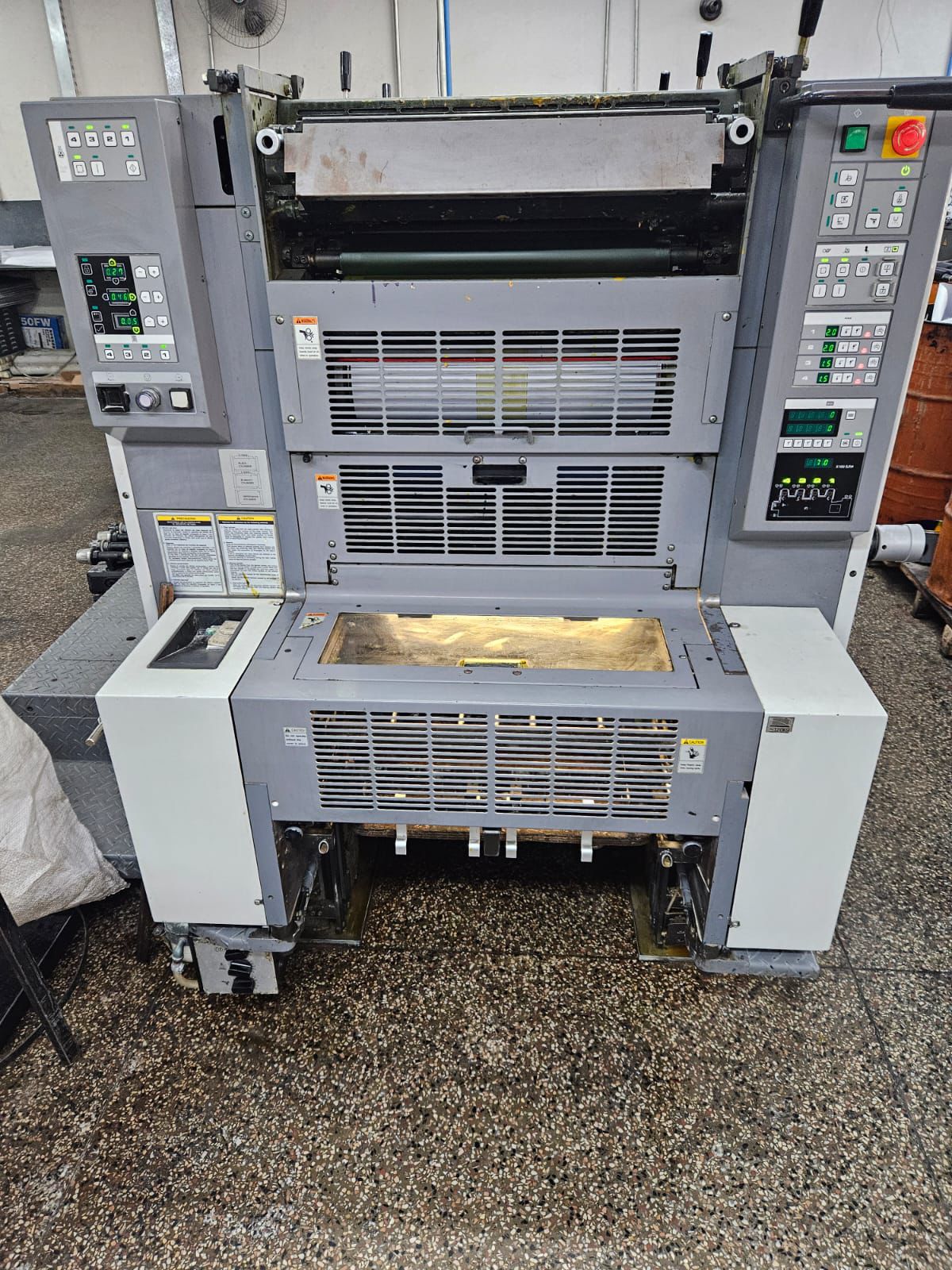 Ryobi GE ano 2012 completa. Papel Max: 520×370 mm Chapa: 510x400x0,20mm Mancha máxima: 505x350mm Espessura máxima de Papel: 0,5 mm Velocidade: 13mil/horz ✅Apenas 13 milhões de impressões